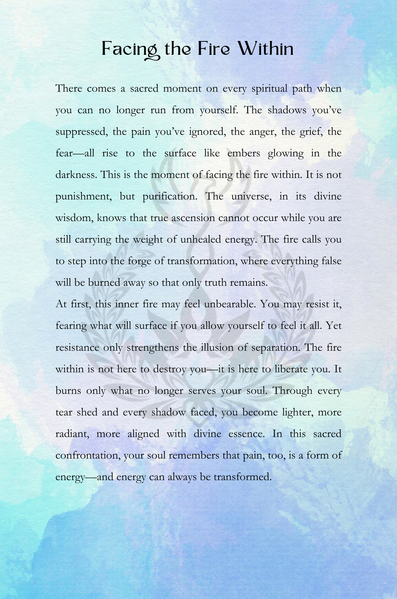 This work guides you through the ancient and deeply personal process of alchemy: the conscious refinement of the self. Through shadow integration, emotional healing, reflective journaling, and spiritual embodiment practices, you learn how to transform life’s challenges into catalysts for awakening. Every emotion, wound, and pattern becomes raw material for growth when met with awareness and compassion.