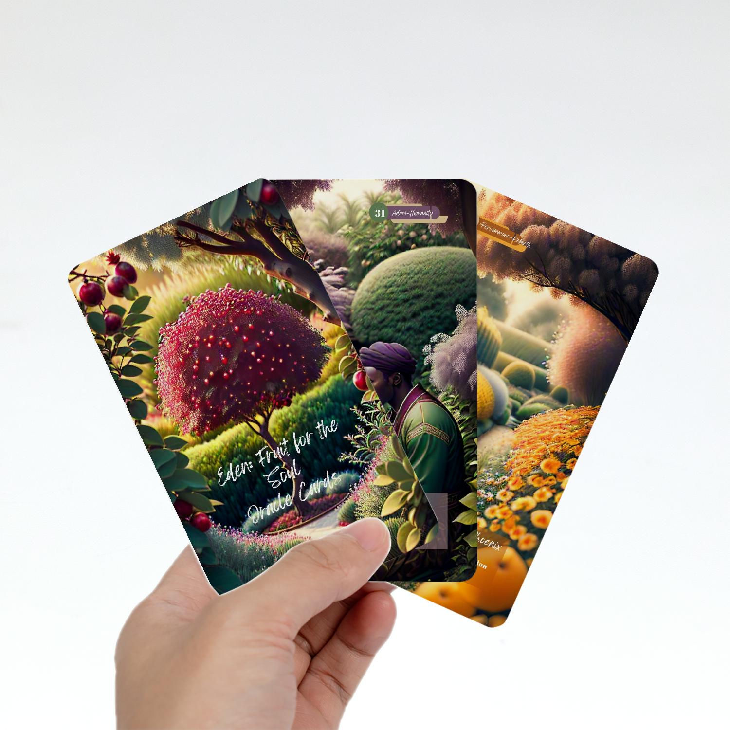 Garden of Eden: Fruit for the Soul Oracle Cards is a 45-card deck designed to nourish your spirit, awaken inner abundance, and reconnect you with the sacred rhythms of growth, patience, and renewal. Inspired by the symbolic wisdom of fruit, this deck reflects the truth that just as nature moves through cycles of planting, nurturing, and harvesting—so does the soul.