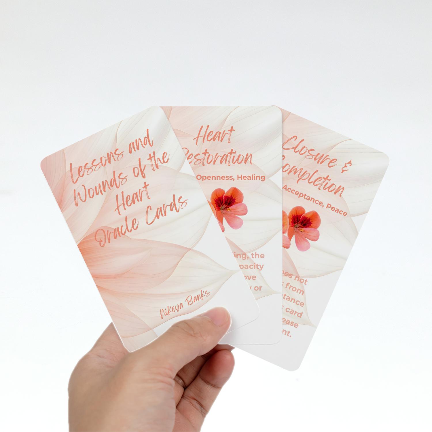 The Lessons and Wounds in the Heart Oracle Cards are a powerful 74-card deck created to illuminate the emotional patterns, wounds, and spiritual lessons that shape our experiences with love. Relationships often mirror the deepest parts of our inner world—revealing both the places where we have been hurt and the areas where healing, growth, and transformation are possible.