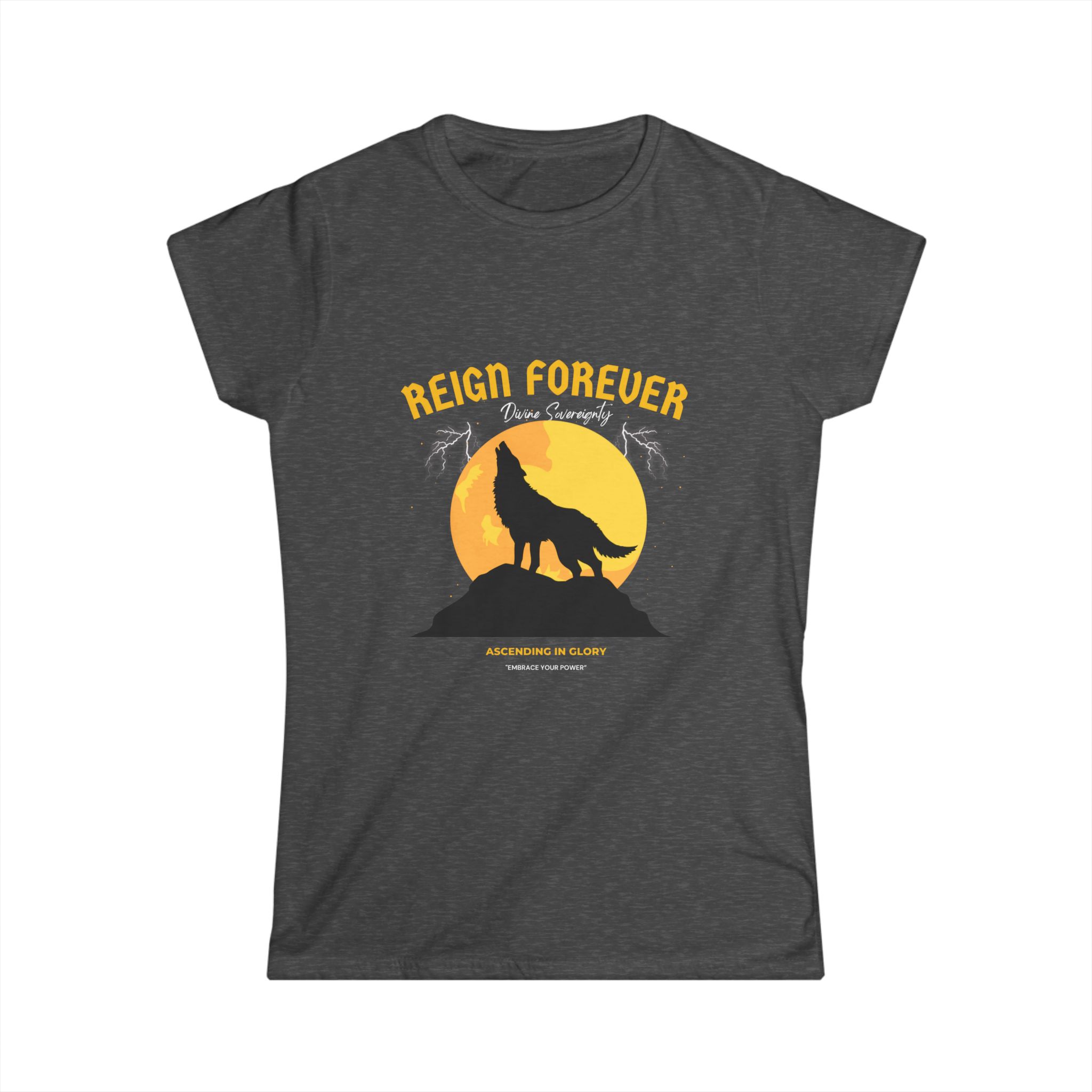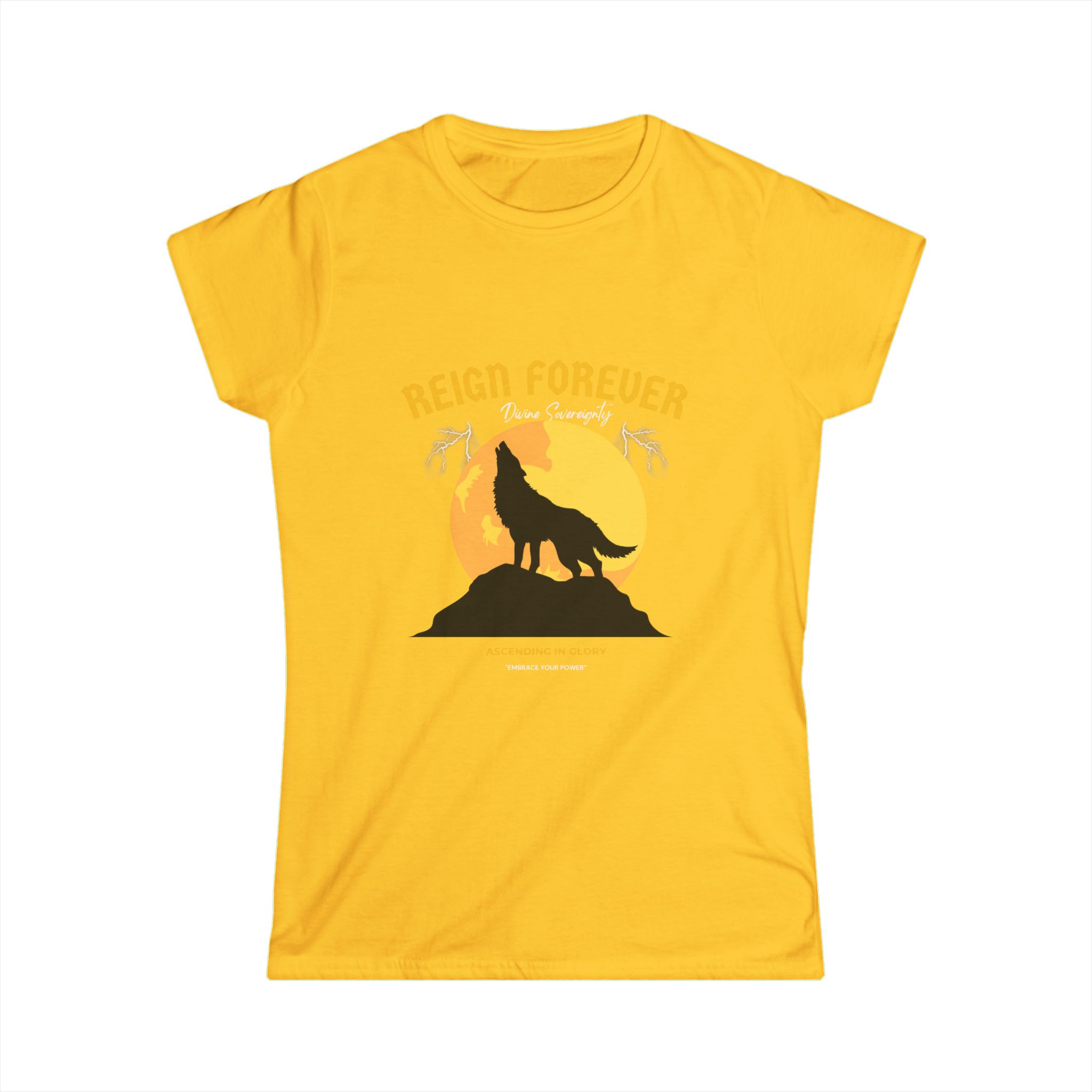 The “Reign Forever Wolf” tee embodies strength, independence, and the power of self-mastery. Crafted from soft, premium fabric, this tee features a striking wolf design symbolizing resilience, intuition, and unwavering confidence. Perfect for those embracing their personal power, leadership, or spiritual journey, the “Reign Forever Wolf” tee serves as a reminder to trust your instincts, rise above challenges, and reign fully in your own life.
