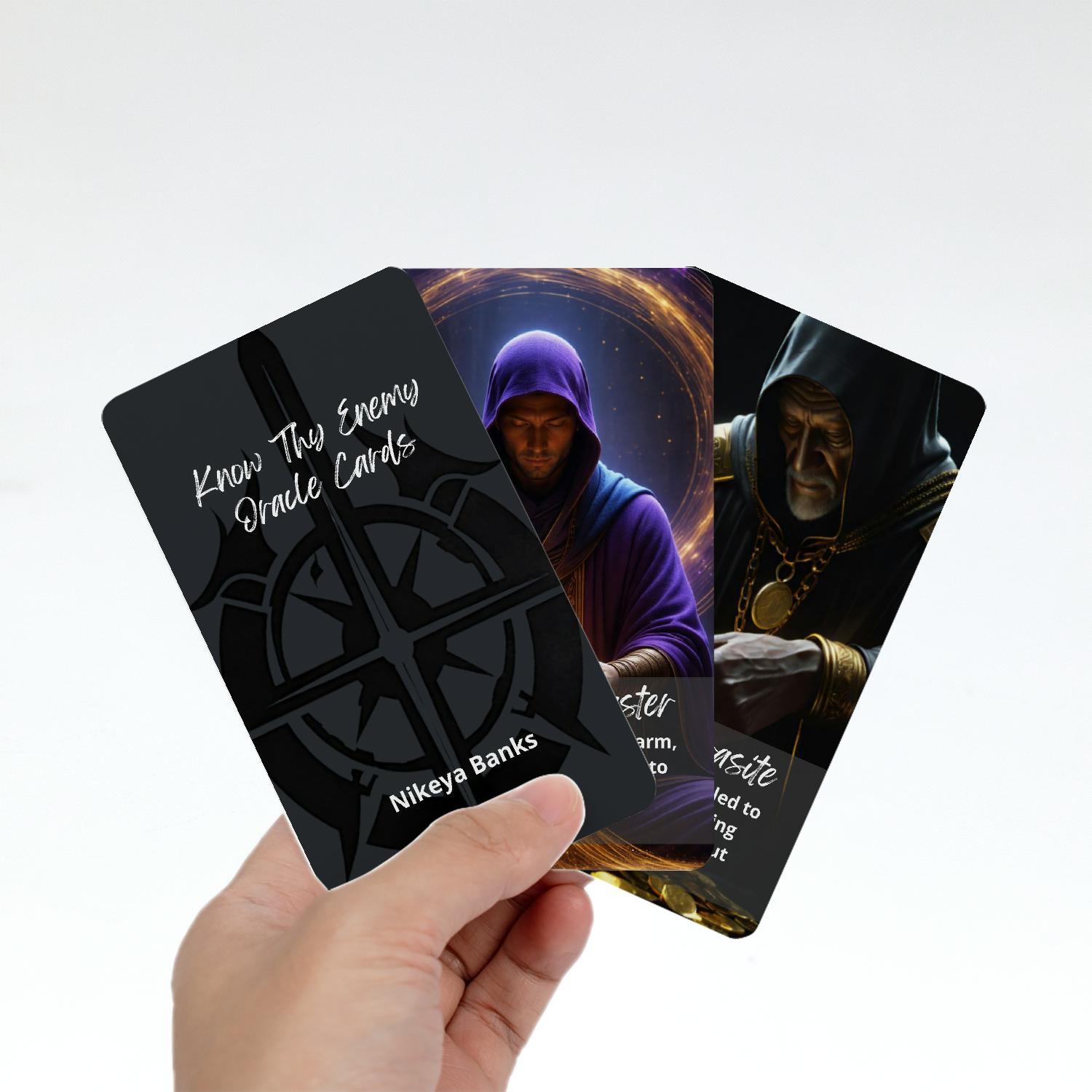 The Spiritual Warfare: Know Thy Enemy Oracle Cards (Full Color Edition) is a 72-card deck designed to sharpen your spiritual discernment, reveal hidden influences, and equip you with the tools to navigate the unseen battles that shape your life. This edition, rendered in striking black and white, emphasizes clarity, contrast, and focus—helping you see the forces at work without distraction, and understand the spiritual tactics used to manipulate, deceive, or mislead.