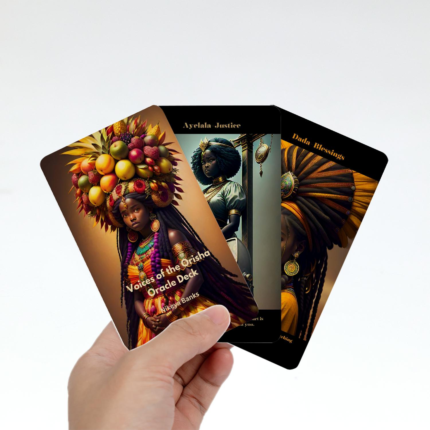 The Voices of the Orisha Oracle Deck is a sacred and powerful divination tool that carries the essence of the Yoruba spiritual tradition, honoring the Orisha as divine messengers, protectors, and guides. Within each card lies the living voice of Spirit—echoes of ancient wisdom carried forward by the ancestors, flowing into your hands to guide your path of healing, transformation, and destiny.